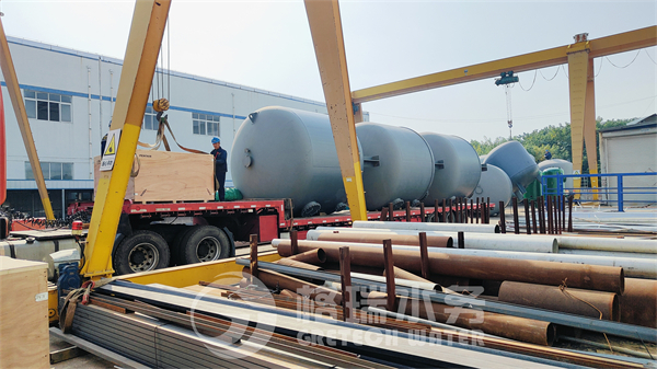 今天發貨的設備是項目整體設備及配件,包括預處理多介質過濾器、反滲透主機多臺、超濾主機多臺、EDI框架、加藥裝置、管材配件、施工器材等設備,現場看到工程師傅安全有序的操作著行車進行裝車,裝卸組人員配合著裝車,7輛大車陸續進場裝車,裝車后大車緩緩的駛出廠區發往工程現場。